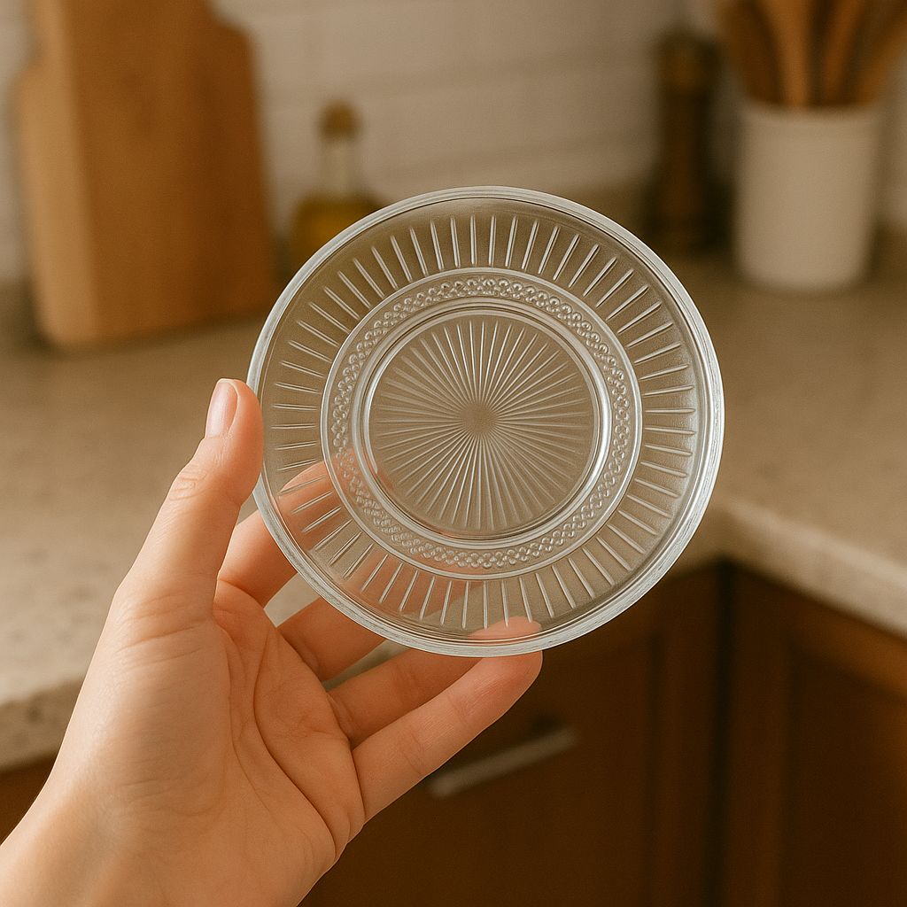 - 6 adet çay tabağı, her biri 12 cm genişliğinde olup, modern tasarımıyla sofralarınıza şıklık katar.; - Gıda temas sembolüne sahip bu tabaklar, bulaşık makinesinde kolayca yıkanabilir özelliğiyle pratik kullanım sunar.; - BPA içermeyen malzemesi sayesinde sağlığınızı düşünerek üretilmiştir; güvenle kullanabilirsiniz.; - Yüksek kaliteli cam materyali ile dayanıklılık ve estetiği bir arada barındırır; uzun süreli kullanım vaat eder.; - Yuvarlak şekliyle geleneksel ve modern çizgileri harmanlayarak her türlü sofra düzenine uyum sağlar.; - Modern tema ve stil anlayışıyla evinizin dekorasyonuna çağdaş bir dokunuş eklerken, günlük kullanım için idealdir.; - Türkiye'de üretilmiş olması yerel kaynakların desteklenmesini teşvik ederken, kalite standartlarından ödün vermez.; 12 cm boyutlarındaki bu tabaklar, standart çay fincanlarıyla mükemmel uyumuyla servislerinizi tamamlamanızda yardımcı olur.;